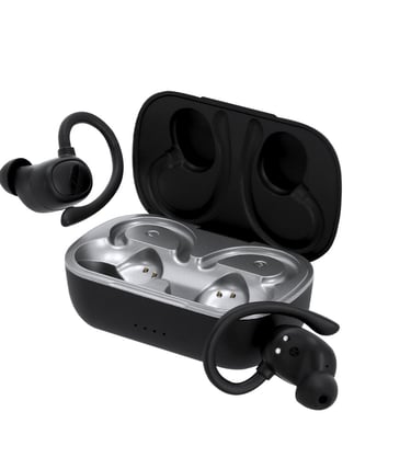 Auriculares intraurales con diseño ergonómico y sujeción firme que se adapta alrededor de la oreja, con conexión Bluetooth® 5.4. Incluyen un estuche con tapa abatible y batería integrada de 200 mAh. Auriculares con control táctil integrado y función manos libres, ideales para llamadas y música. Recargables mediante cable Tipo C -incluido-.