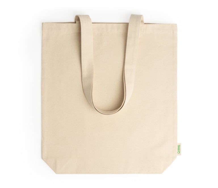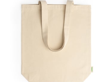 Bolsa 100% algodón orgánico de 280 g/m² con fuelle para mayor adaptabilidad y versatilidad. Incorpora prácticas asas largas de 70cm para convertirla en una opción cómoda en sus transporte.