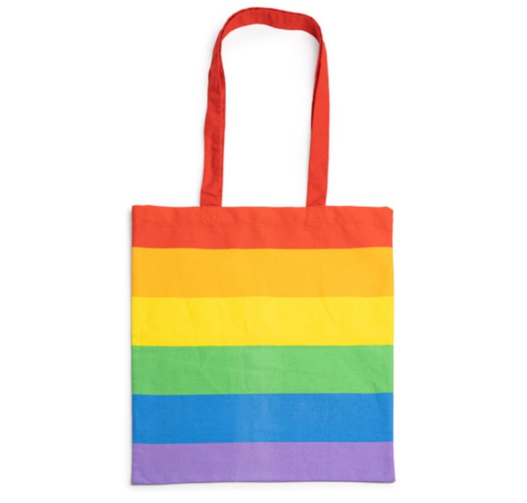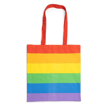 Bolsa 100% algodón de 180 g/m²con acabado multicolor. Asas largas reforzadas de 70 cm.