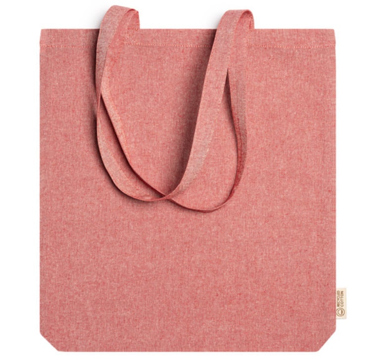 Bolsa realizada en algodón reciclado de 140 g/m² en acabado jaspeado con asaslargas de 70 cm. DISPONIBLE EN 7 COLORES.