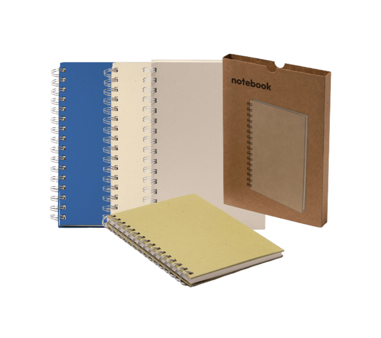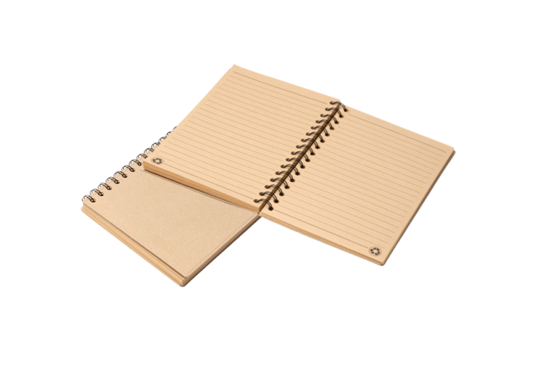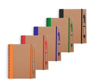 Libreta A5 con portada rígida de cartón reciclado y espiral doble. El interior cuenta con papel reciclado FSC y contiene 80 hojas a rayas. Ideal para quienes buscan una opción ecológica sin sacrificar la calidad y funcionalidad. DISPONIBLE EN 4 COLORES.